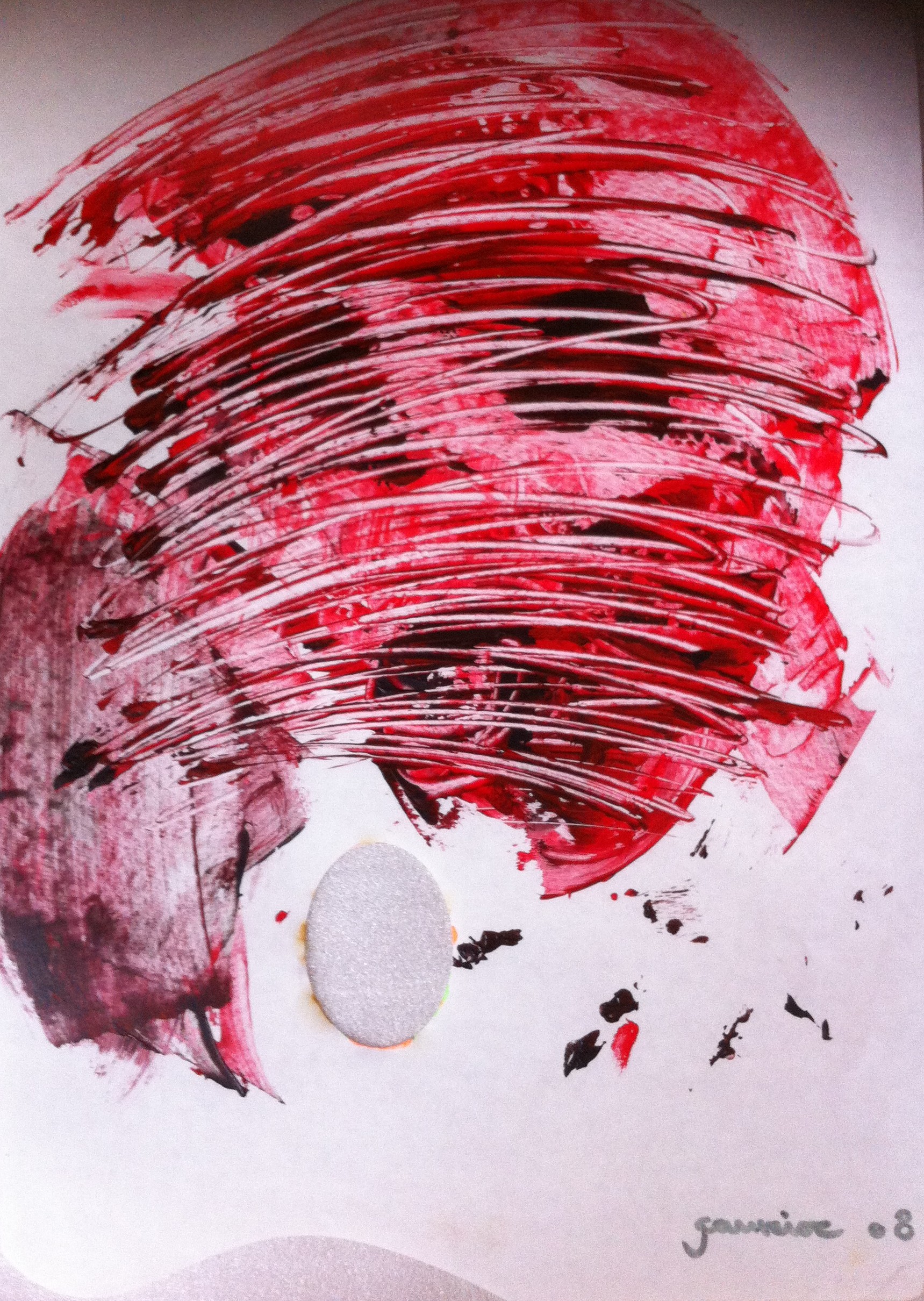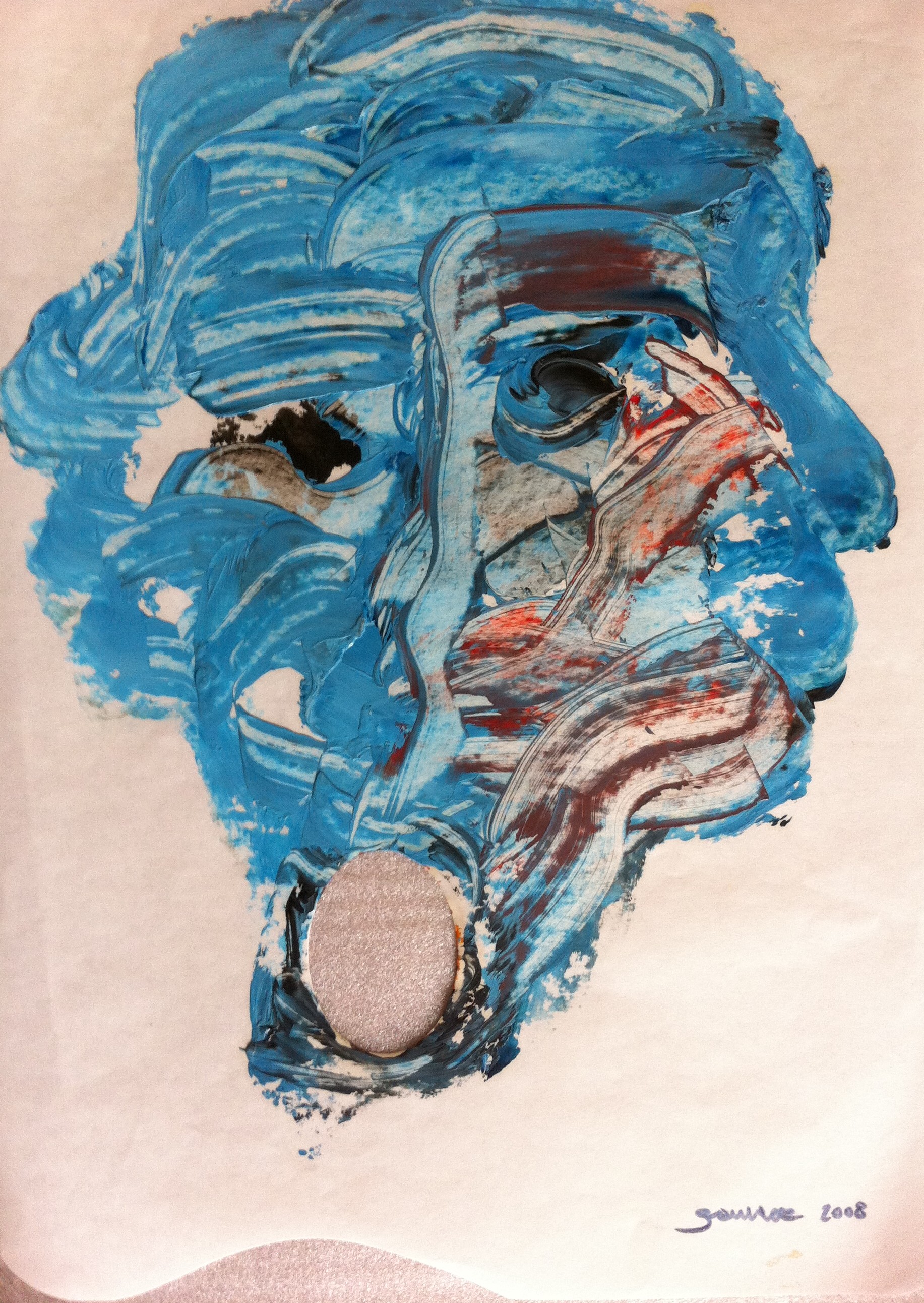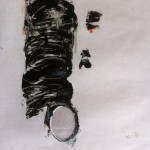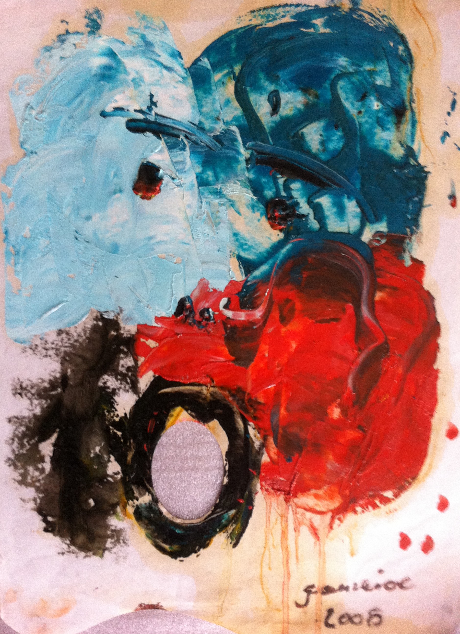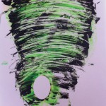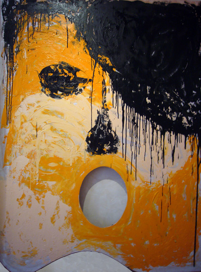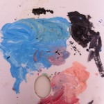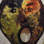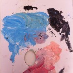 La palette de peinture comme outil de base, depuis longtemps, elle s’est imposée peu à peu comme support et est devenue l’œuvre d’art elle-même. Trois ans après, les peinture ont passé du format 43×27 à 200×160 le plus grand format.