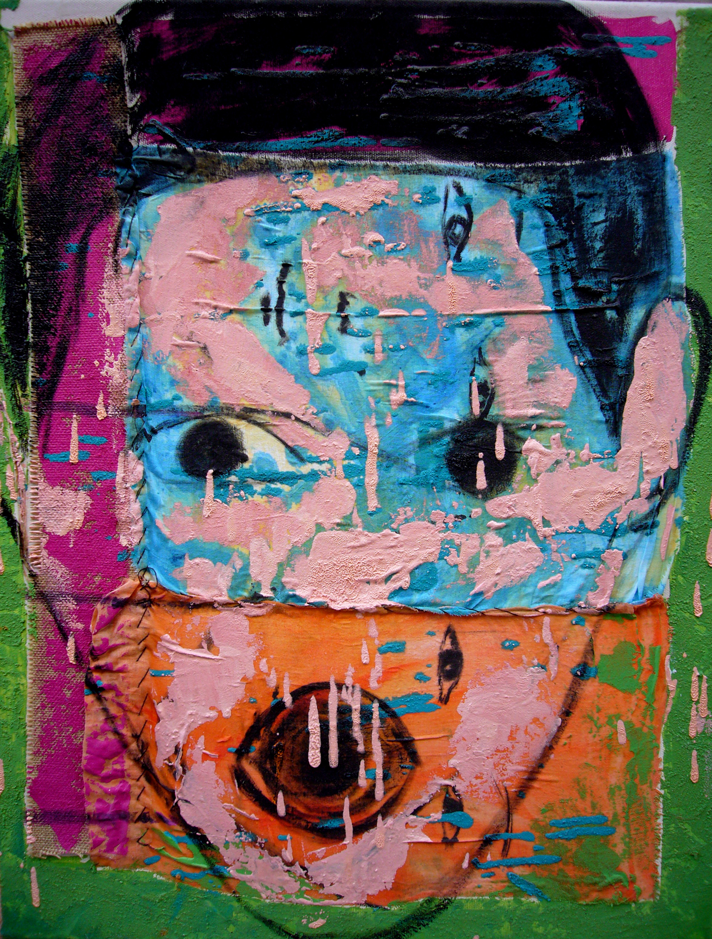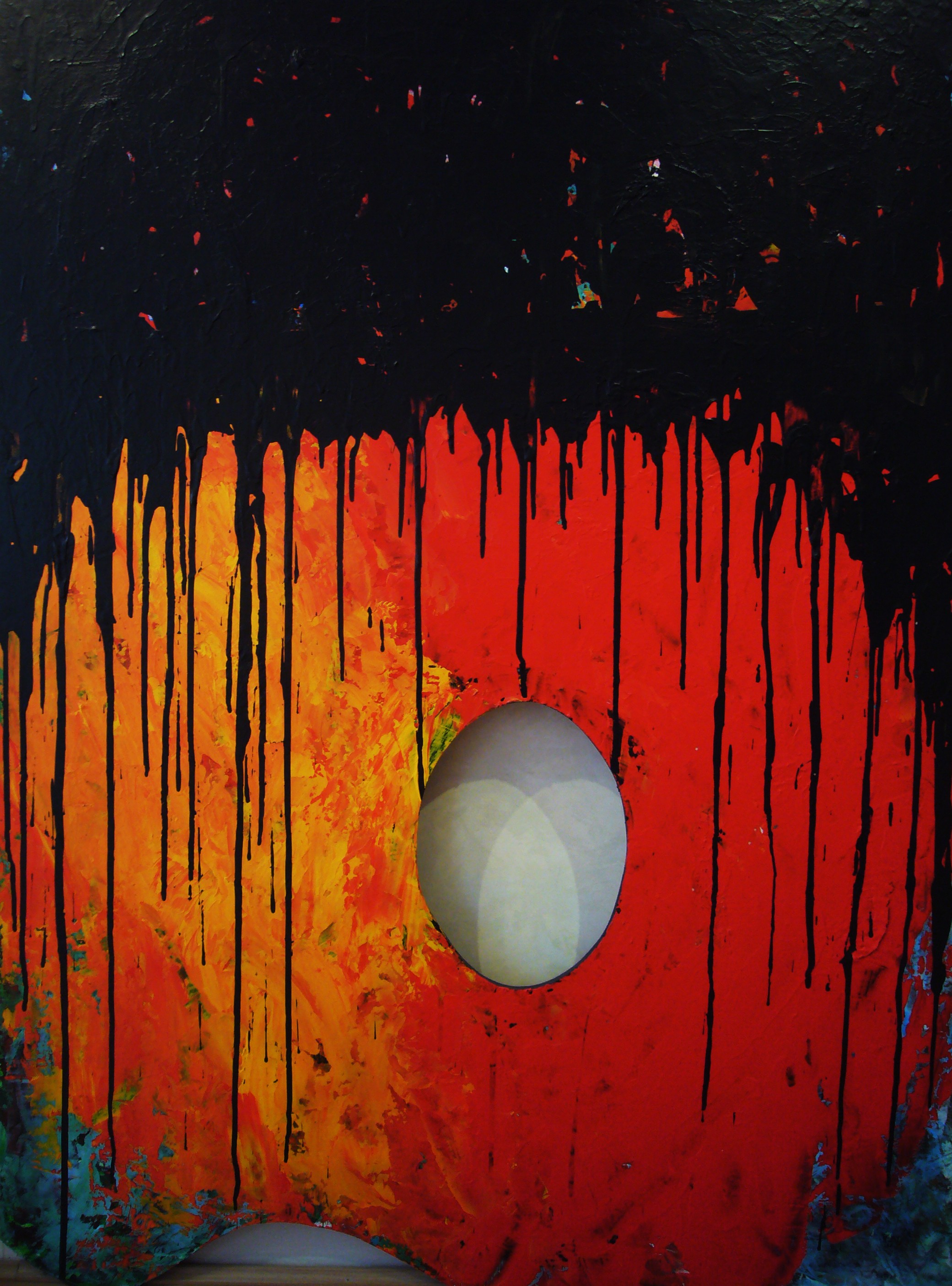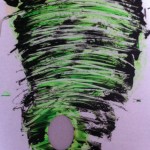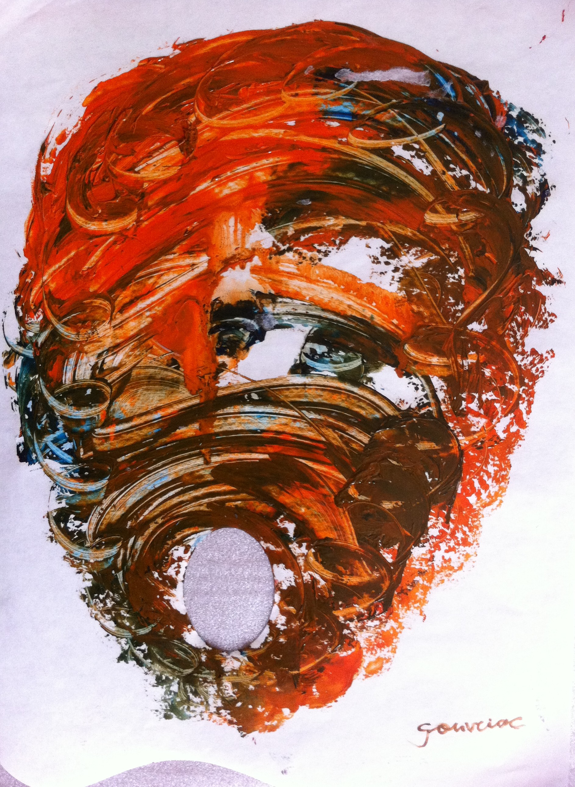La palette de peinture comme outil de base, depuis longtemps, elle s’est imposée peu à peu comme support et est devenue l’œuvre d’art elle-même. Trois ans après, les peinture ont passé du format 43×27 à 200×160 le plus grand format.
