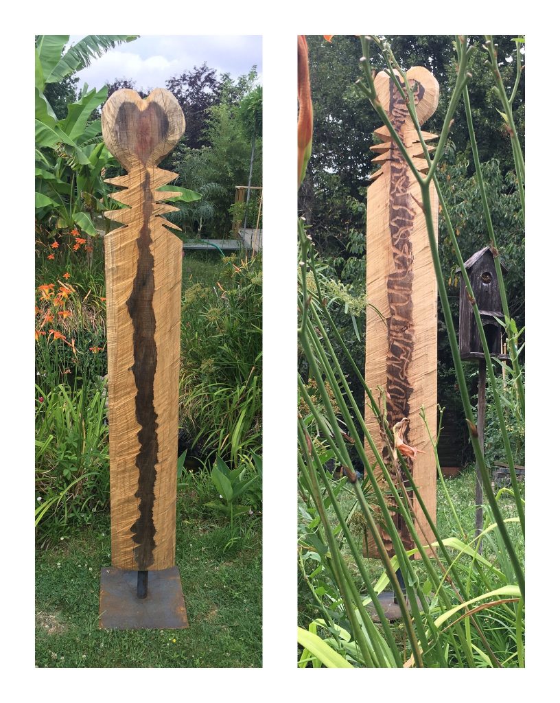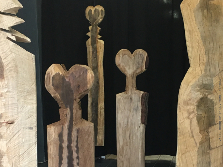 Il me tient à coeur de vous transmettre mes impressions, fondées sur ma rencontre avec l’artiste Celia Gouveiac, reliée à mon approche de sa singularité artistique, via ses toutes dernières oeuvres : ces figures de bois sculpté, réunies dans un dispositif d’installation spécifique in situ, à la galerie « La vitrine », à Bordeaux.