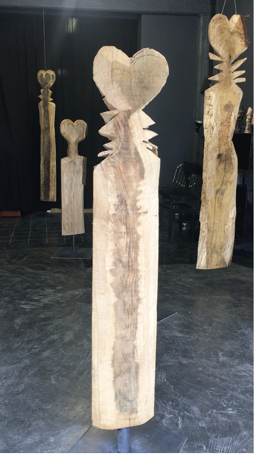 Personnellement, c’est l’énergie radicale de ces gestes de taille et d’extraction de la figure, dans le bois écorcé, qui m’aura touchée.